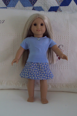 Every girl needs a fun outfit for lunching and shopping! This outfit used the FREE Trendy T-Shirt Pattern from Liberty Jane and a Mini Skirt pattern also from Liberty Jane. The skirt and shopping tote were made from a little dress I found at a thrift store. That's why the tote has such a nice pocket :) I added purple lace trim from my stash.